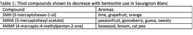 Despite the potential drawbacks, bentonite is the most commonly used fining agent for proteins. In some cultivars grown in Virginia, such as Sauvignon Blanc, Pinot Gris, Petit Manseng and Traminette, large doses of bentonite (100 g/hL, 7.5 lbs/1000 gallons) are needed to achieve stability. This leads to concerns over flavor stripping as well as overall loss of wine due to large amounts of lees. Other options are being explored to work in conjunction with bentonite to improve its effectiveness, or to replace bentonite altogether: