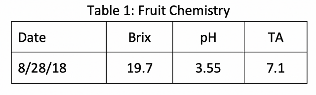 Chardonnay is the most planted variety of wine grape in Virginia1 and nearly every winery sells at least one Chardonnay product. Of all the grape varieties, Chardonnay winemaking may be the most varied. There are so many expressions of this grape! Some winemakers choose to treat the juice reductively while others intentionally oxygenate juice. Fermentation vessels include stainless steel, concrete eggs, neutral and new oak barrels. The choice of whether to allow or encourage malolactic fermentation is also different among cellars and among fruit sources. This study explores two other differences in Chardonnay winemaking: fermentation temperature and yeast strain. A primary concern in Chardonnay winemaking in Virginia is the retention of acidity and expression of minerality, so two yeast strains will be tested, one commonly used barrel fermenting yeast and a second that is thought to improve acid retention. This yeast is slow at cool fermentation temperatures, though, so each yeast will be tested at two ambient temperatures, one cooler fermentation in the barrel room (60°F0 and one warmer fermentation in the tank room (72°C). During a panel discussion on Chardonnay winemaking in Virginia at the VWA Technical Meeting in 2017, Jim Law of Linden Vineyards mentioned that he used to ferment his Chardonnay at cool temperatures, but in recent years has moved to a warmer fermentation temperature in this variety. This was further incentive that warm fermentation of Chardonnay should be examined.