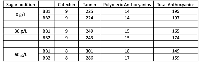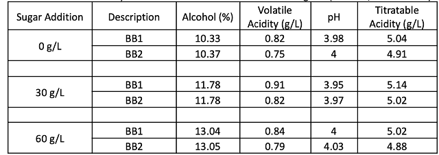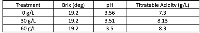 Table 1: Fruit chemistry for Cabernet Sauvignon prior to chaptalization (in-house data)