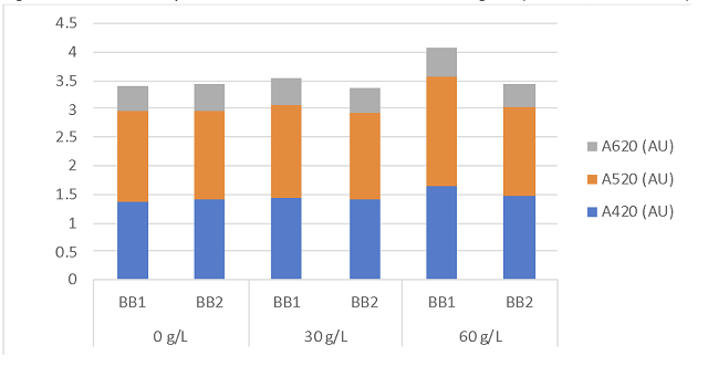 Figure 1: Color intensity for three treatments of Cabernet Sauvignon (ICV labs, March 2021)