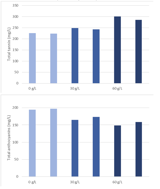Table 4: Phenolic measurements (mg/L) for three treatments of Cabernet Sauvignon (ETS labs March 2021)