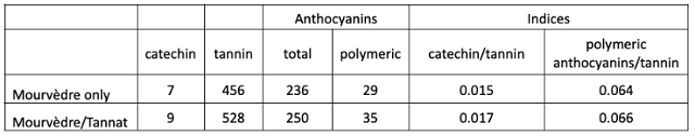 Table 3: Phenolic measurements (mg/L) for two treatments of Mourvèdre (ETS labs)