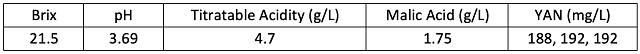 Table 1: Viognier juice chemistry (in-house values)