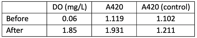 Table 2: Change in dissolved oxygen and A420 with hyperoxygenation (In-house data)