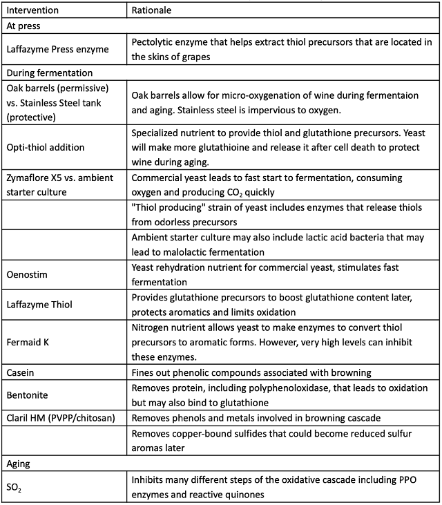 Figure 1: Critical control points in the production of aromatic white wines that seek to mitigate the effects of oxygen exposure. Adapted from Waterhouse and Laurie 200613 and Chauffour14.