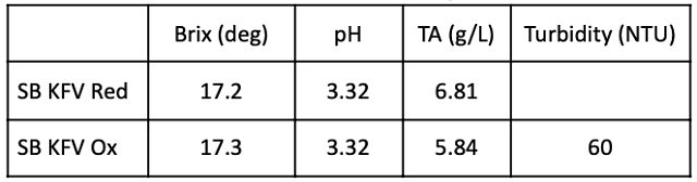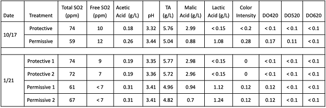 Table 3: Wine Chemistry for Sauvignon Blanc treated with permissive vs. protective oxygen strategies (ICV labs)