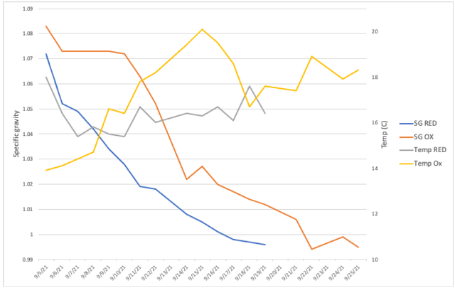 Figure 2: Fermentation kinetics for Sauvignon Blanc treated with permissive vs. protective oxygen strategies (in-house data)