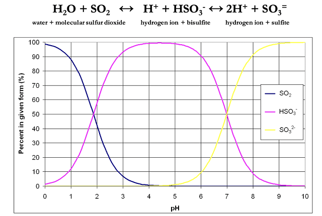 Figure 1: Forms of sulfur dioxide in solution are pH dependent. Image from Rotter n.d5.