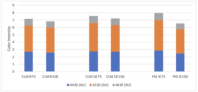 Figure 3: Color Intensity for three pairs of Cabernet Sauvignon (ICV Labs)